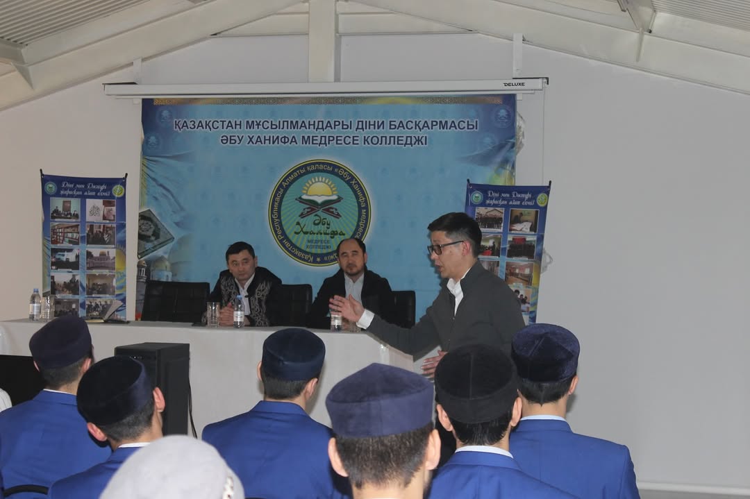 Әбу Ханифа медресе колледжінің шәкірттері Алматы қаласы Дін істері жөніндегі басқармасының “Дін мәселелерін зерттеу орталығы” КММ басшысы Ибрагимов Дулат Ерсайынұлымен және Алматы қаласы Дін істері жөніндегі басқармасының Жетісу ауданы бойынша қызметкері Қабылбеков Самат Еримайұлымен кездесті