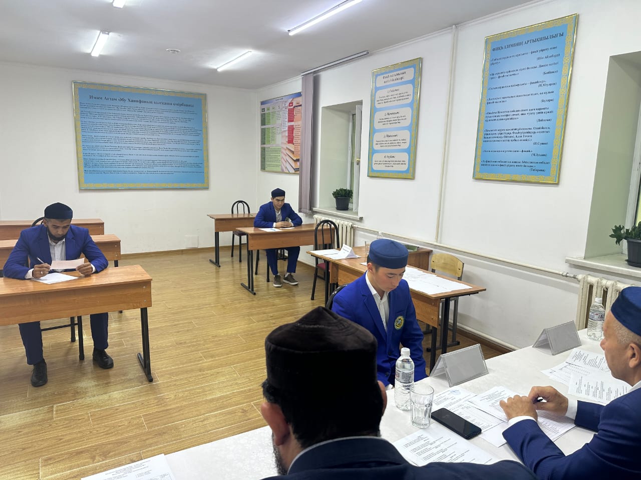 Шара басында «Әбу Ханифа» медресе-колледжінің директоры Құлмұхаммад Махамбет комиссия құрамын шәкірттерге таныстырып, емтиханға сәттілік тіледі. Ол бұл сынақтың – түлектердің діни білім жолындағы маңызды кезеңі екенін атап өтіп, алдағы өмірлерінде табыс, ілімде береке тіледі.