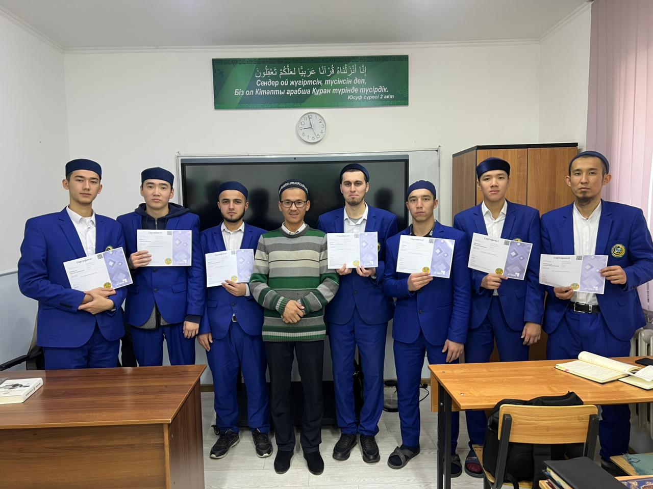 Әбу Ханифа медресе-колледжінің бір топ шәкірті ҚР Қаржы нарығын реттеу және дамыту агенттігі (АРРФР) ұйымдастырған қаржылық сауаттылық бойынша оқыту курсынан сәтті өтіп, арнайы сертификаттармен марапатталды.